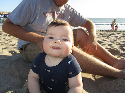 That same day, we headed out to the beach to celebrate my sister Stephanie's birthday which was on March 1st. This was Preston's first time at the beach. We were sad not to have Michael with us, so my brother stood in as "daddy." haha. Preston was in a great mood the whole time we were in Ventura. Jackson hauled him onto the beach in his stroller. It was hilarious! Some serious 4X4 action!